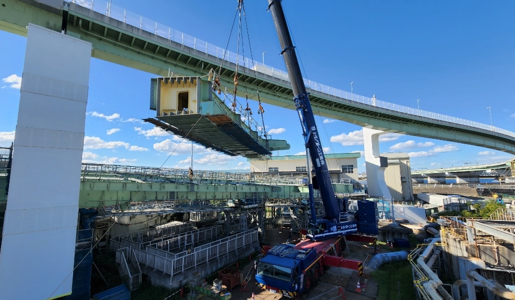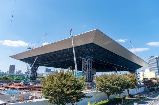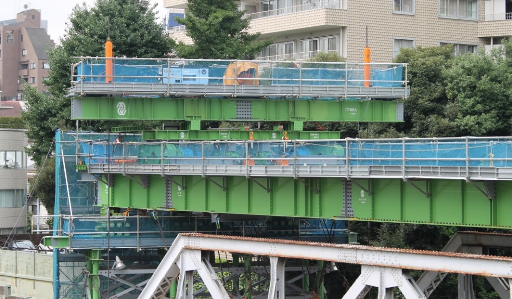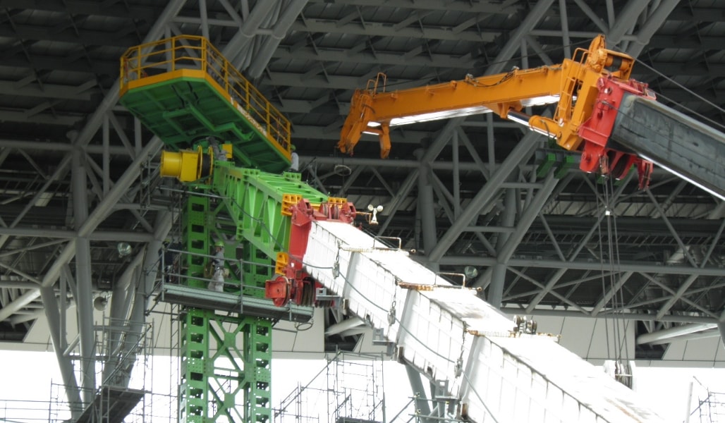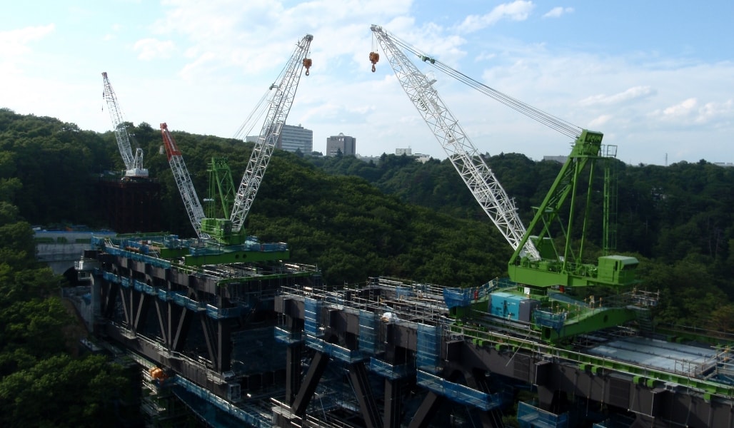 特殊機材を保有する事の重要性は、橋梁に限った話では無く、東京スカイツリー等のタワー鉄骨建築作業や、東京アクアティクスセンターやエスコンフィールド HOKKAIDOなどの特殊建造物の鉄骨建築作業においても、その計画や施工を行う上でとても重要な要素となっております。