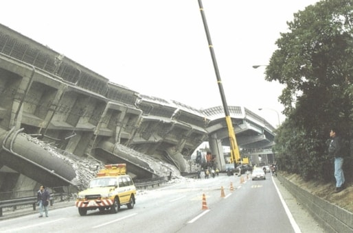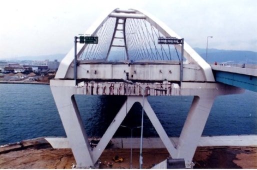 阪神淡路大震災は、橋梁の耐震基準を大幅に見直す契機となった戦後初の都市直下型大地震で、かつてない規模の橋梁で多大な損傷が発生し、MEGはその復旧工事においても様々な活躍をしました。中でも、神戸大橋、六甲大橋等の複数の長大橋で多大な損傷が発生した神戸港港湾道路及びポートライナーの復旧工事においては、迅速な初動対応により現地状況を適切に把握し、最適な方法にて早期復旧に大きく貢献しました。また、阪神高速5号湾岸線復旧工事においては、同じく多くの橋梁の早期復旧に貢献したばかりではなく、現地調査に基づく東神戸大橋(斜張橋)や西宮港大橋(ニールセンローゼ橋)の被災メカニズムの解明にも大きな貢献を果たしました。