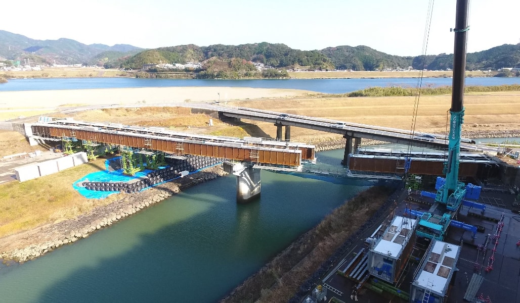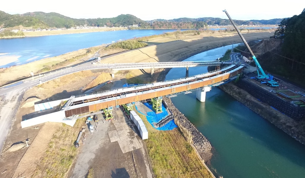 2013年7月の山口・島根豪雨災害により流失したJR山口線の第6阿武川橋りょうの復旧工事において、通常であれば2年以上の工期が必要とされるところを、早期復旧に向けて全社が一丸となって取り組み、設計着手から架設完了迄をわずか1年足らずで完了させることが出来ました。
