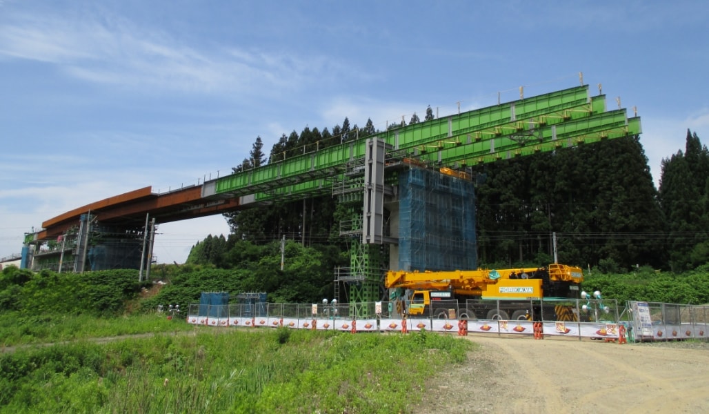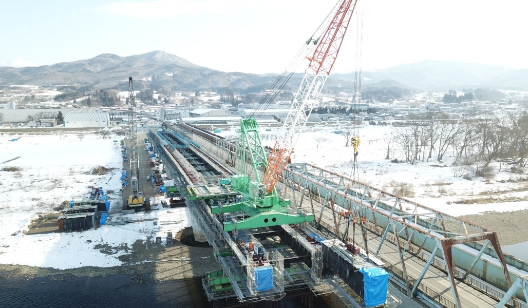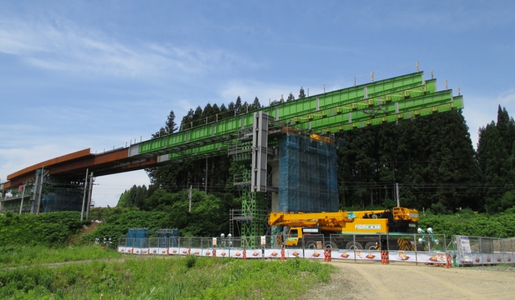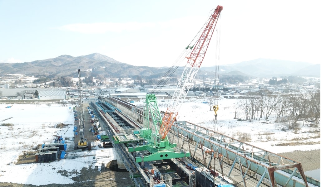 2011年3月の東日本大震災において被災した東北新幹線の花京院架道橋の復旧工事をわずか1カ月半で完了させ、4月末の運転再開に間に合わせる事が出来ました。