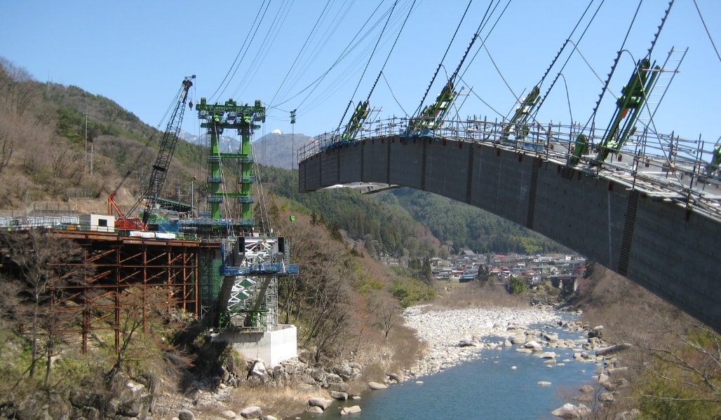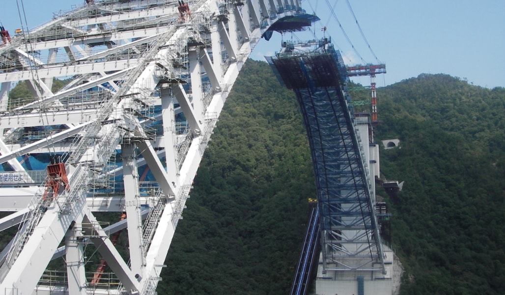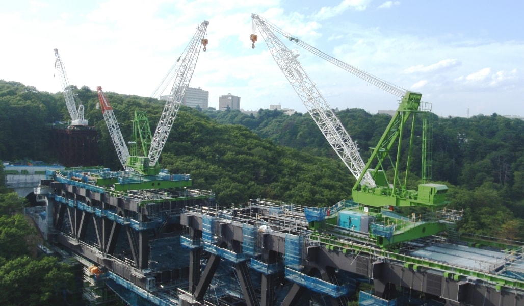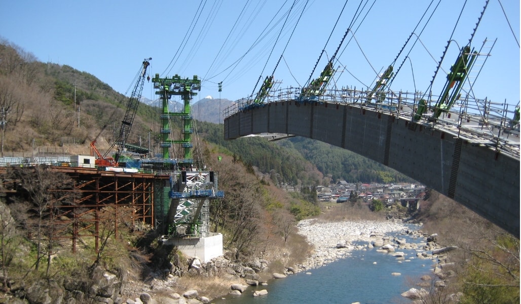 MEGは、橋梁に関する特殊工法に関する技術のみでは無く、大空間・特殊構造物の建設作業に必要となる特殊工法の技術につきましても保有しております。その中の代表的な工法について、いくつかご紹介させて頂きます。