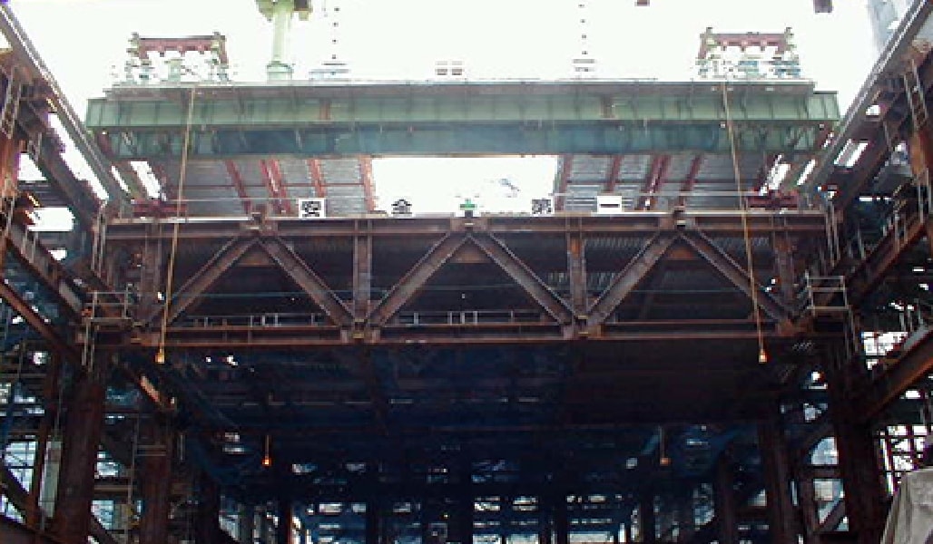 (7)フローティングクレーンによる大ブロック一括架設工法