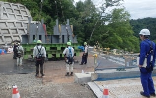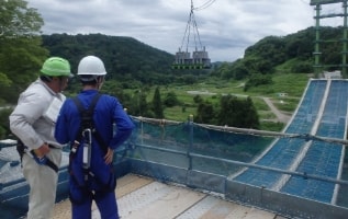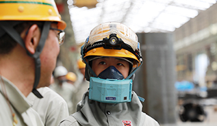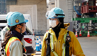 当社は、製品の製造、輸送、工事の施工にあたって、常に安全に留意し、無事故・無災害で竣工するため、安全な設備、安全な作業方法、安全教育の実施などに万全を期する