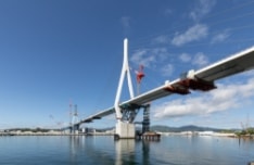 東日本大震災からの復興のリーディングプロジェクトとして三陸沿岸道路が整備され、東日本大震災からちょうど10年となる2021年3月6日に供用開始した「気仙沼湾横断橋(通称:かなえおおはし)」は当社が架設工事に携わりました。「かなえおおはし」という名前は、公募によって気仙沼湾の形を表した土地の名前の「鼎(かなえ)が浦」と、「夢・願い・希望を叶える」の両方の意味が込められたものです。気仙沼湾横断橋は宮城県気仙沼市の大川河口部と気仙沼湾奥部に架かる長大橋で、東北地方で最大の斜張橋となっており、三陸沿岸道路の整備によって交通の所要時間短縮のほか、救急医療施設への搬送時間短縮や災害時の緊急支援物資等の確実な輸送路確保等が実現されています。